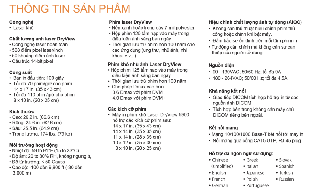 - Chúng tôi thiết kế máy in phim khô laser mới Carestream DryView 5950 đặc biệt cho các đơn vị luôn quan tâm đến chất lượng dịch vụ mà họ đang cung cấp đến bệnh nhân. Hệ thống máy in DryView mới này mang đến chất lượng ảnh laser hàng đầu — công nghệ đỉnh cao — với chi phí đầu tư hợp lý. Mạnh mẽ, tiết kiệm diện tích, có độ phân giải 508 ppi và dễ dàng tương thích nhiều khối lượng phim khác nhau cho các khoa phòng. Hoàn toàn lý tưởng cho mọi ứng dụng ảnh từ Computed Radiography (CR), Digital Radiography (DR), Magnetic Resonance Imaging (MRI), Computed Tomography (CT), và Siêu Âm. Tăng cường tính năng nhũ ảnh giúp cho hệ thống trở nên hoàn hảo khi sử dụng cho CR-có nhũ ảnh và các ứng dụng nhũ ảnh kỹ thuật số.